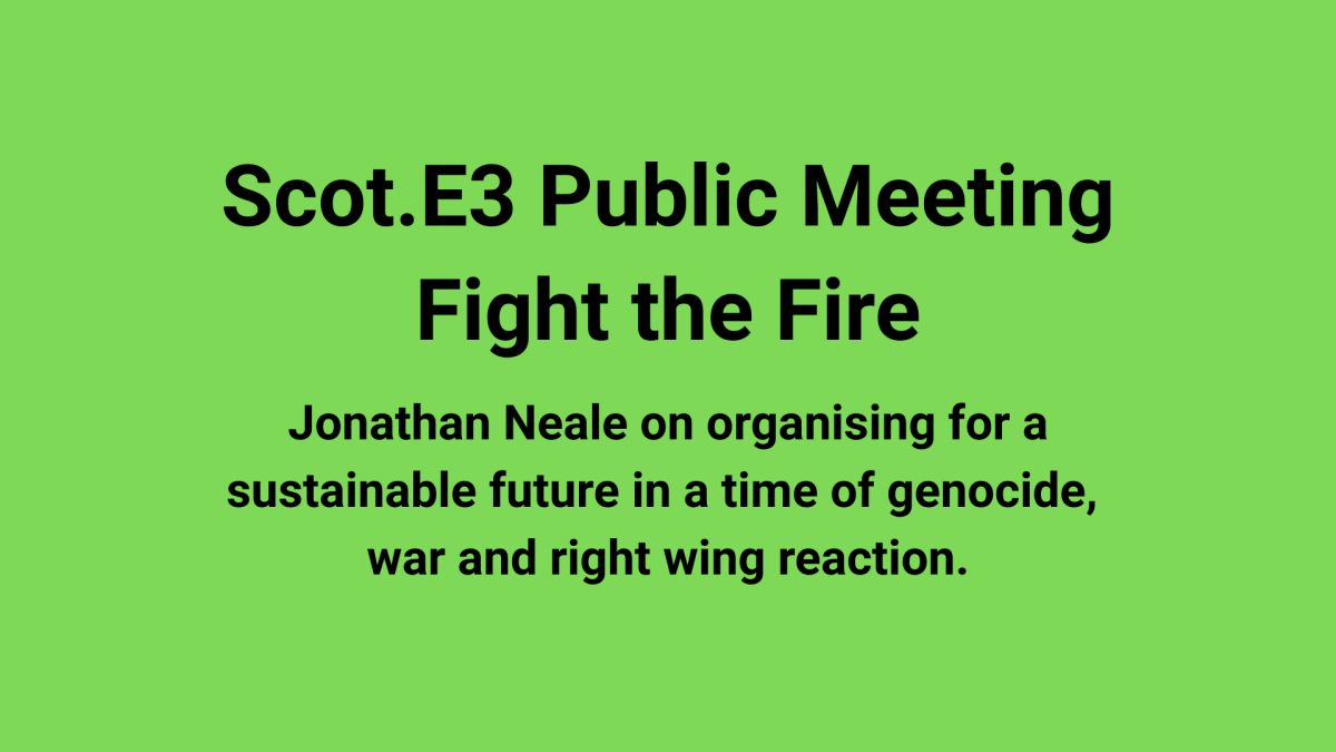 Video of the introduction to the Scot.E3 public meeting where Jonathan Neale introduced a discussion on organising for a sustainable future in a time of genocide, war and right wing reaction.