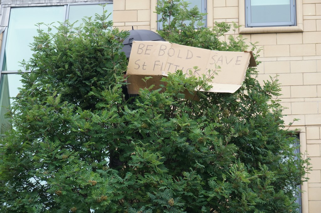 After leaving the meeting with Julian Farrar, This is Rigged activists Mike Downham and Tom Johnson decided to occupy a small tree outside the Ironside Farrar offices, and are there awaiting a response.