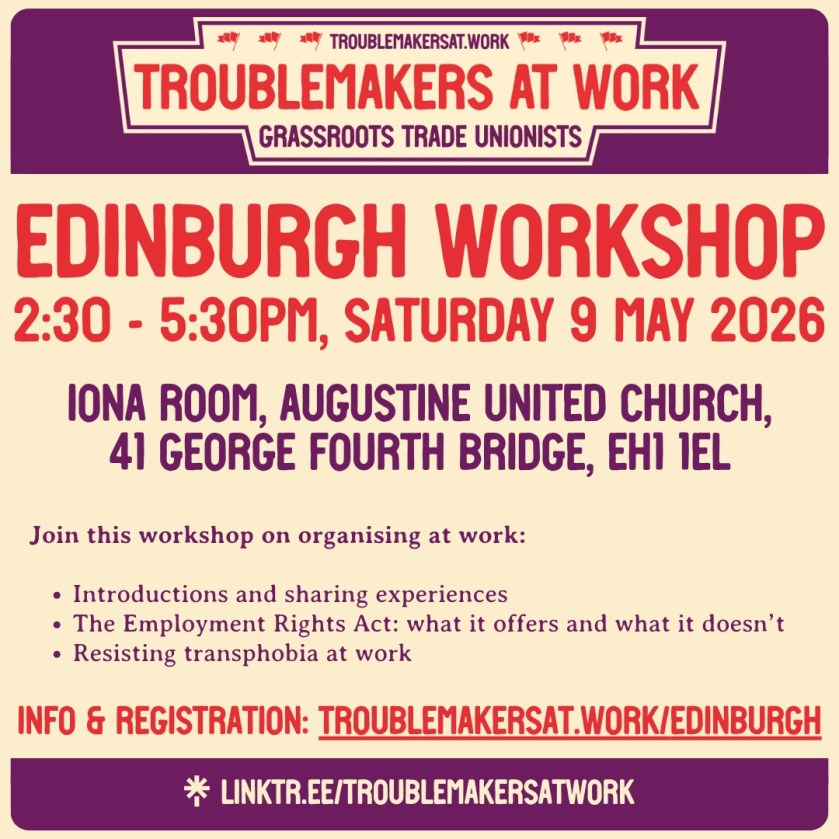 More details at https://troublemakersat.work/event/edinburgh-organising/
