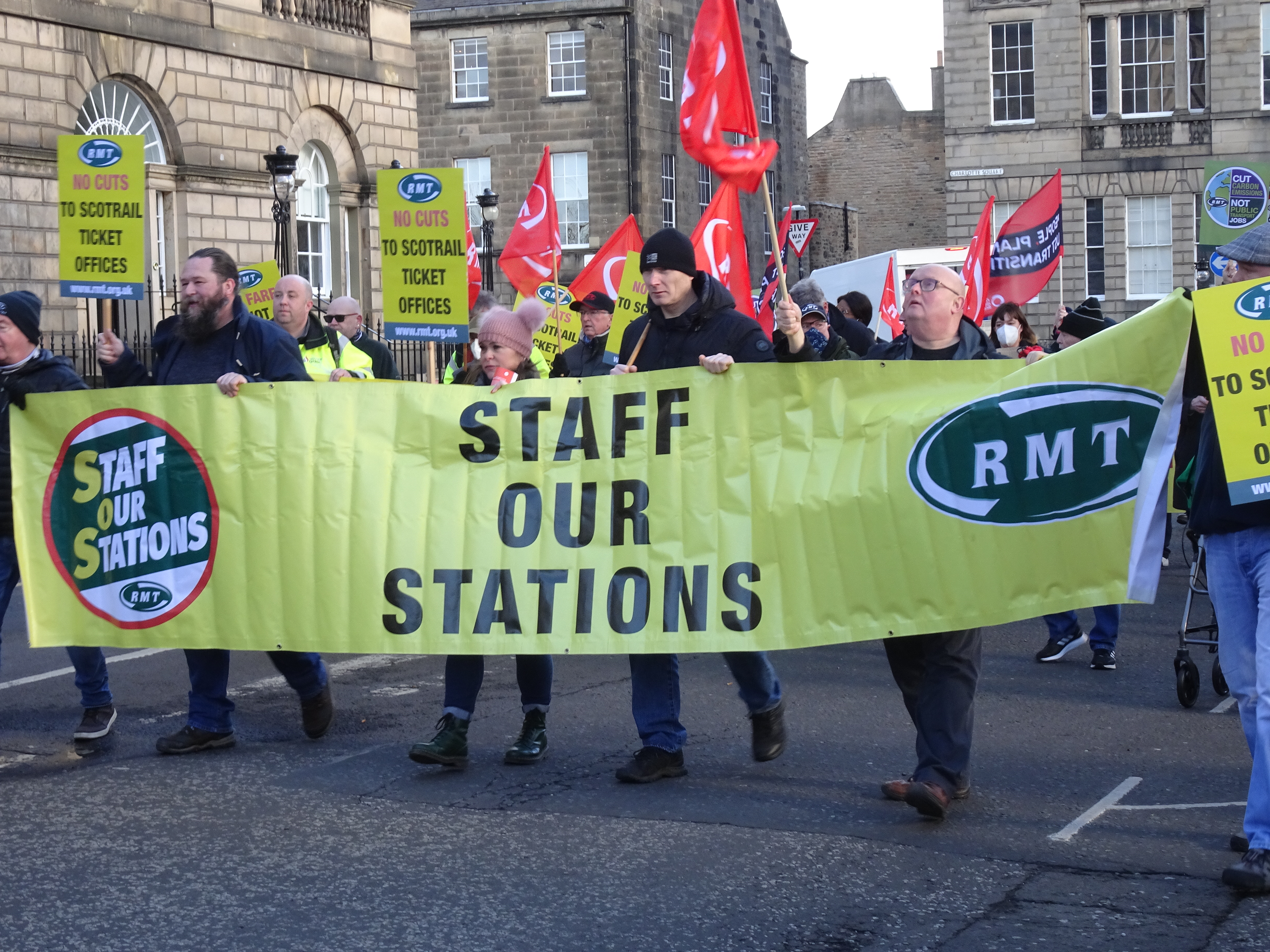 Solidarity with rail, ferry and energy workers, members of the RMT union who are protesting on Monday 31st January in Edinburgh. Assemble 11am on the Waverley Station concourse.